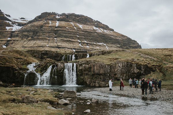 A wedding ceremony at Kirkjufellsfoss near Hotel Budir. All images in this post are by Hartman Outdoor Photography.